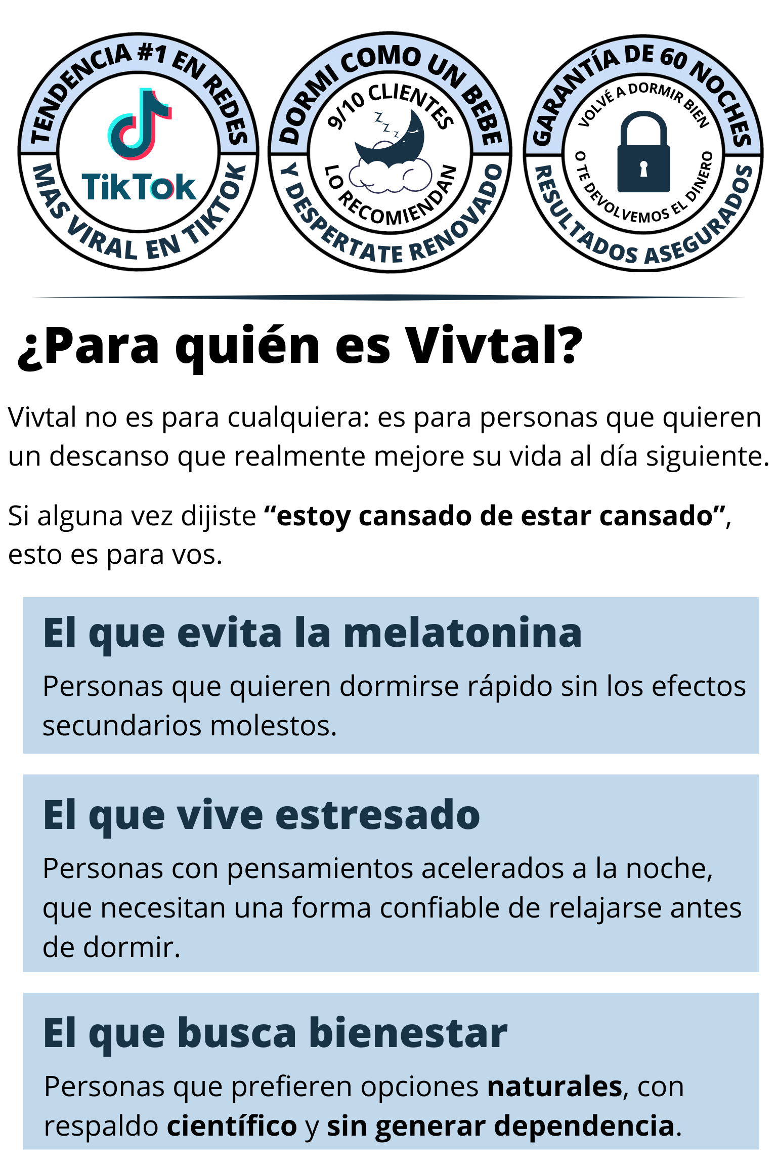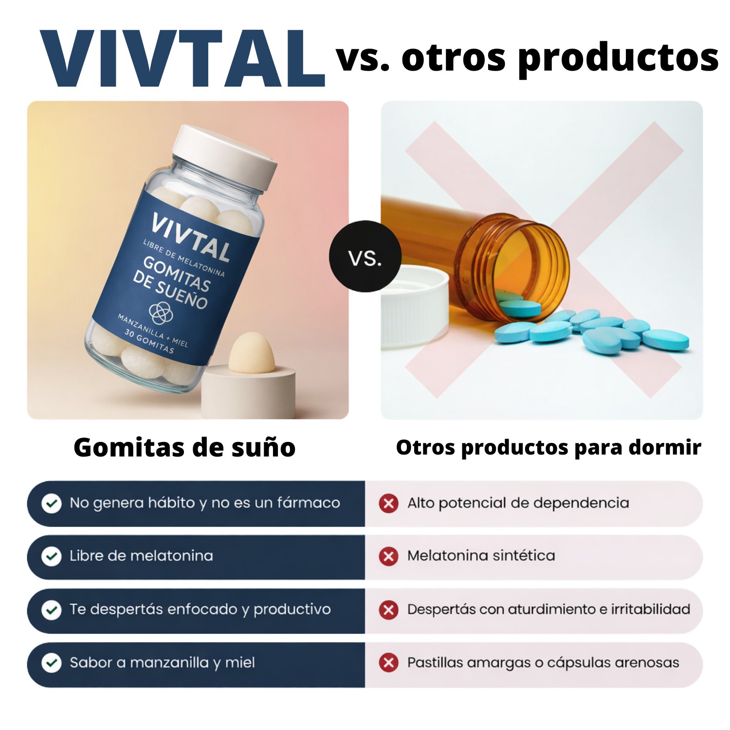 No. Vivtal ayuda a relajar el cuerpo y la mente de forma natural, sin sedación farmacológica ni “golpes” hormonales. Por eso muchas personas se despiertan más claras y sin aturdimiento.