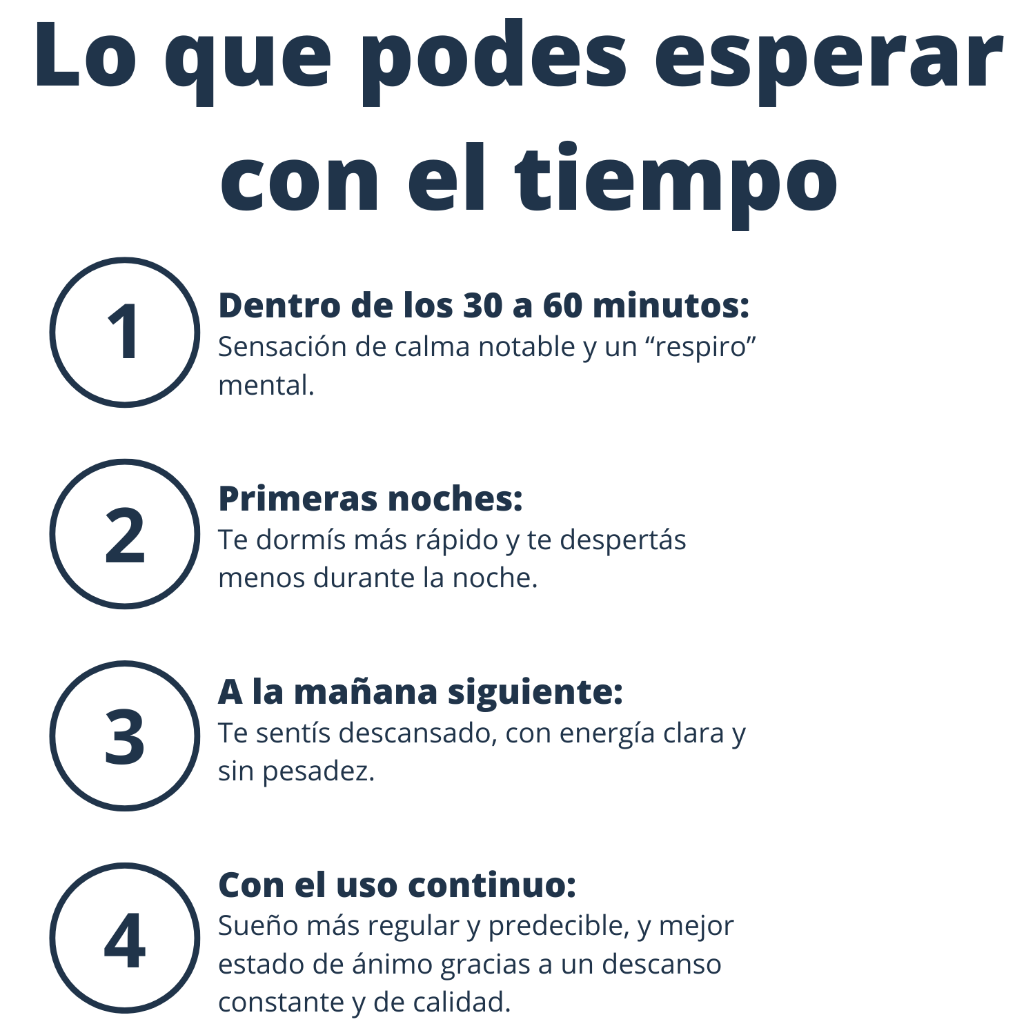 Qué hace por vos: te ayuda a relajarte más rápido, dormirte de forma natural y despertarte con la mente clara, sin sensación de sedación.
